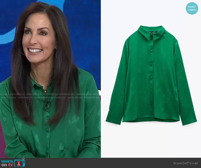 on Today on NBC was spotted wearing this green floral shirt on Today on Aug 28 2023's episode. 's Top is the Floral Jacquard Top by Zara.