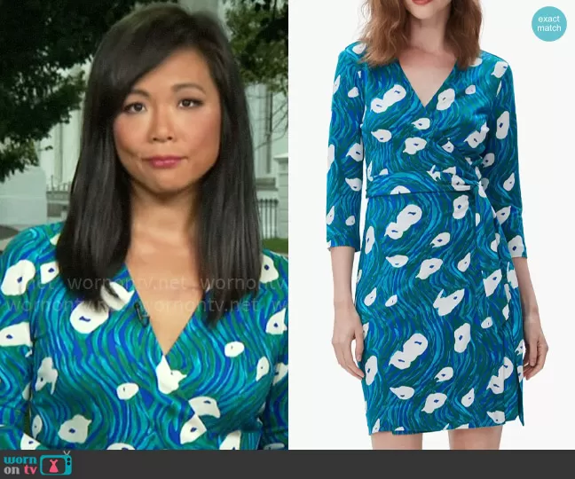 Weijia Jiang on CBS Mornings on CBS was spotted wearing this teal printed wrap dress on CBS Mornings on Aug 30 2023's episode. Weijia's Dress is the Julian Dress in Ocean Tide Quetzal Green by Diane von Furstenberg .