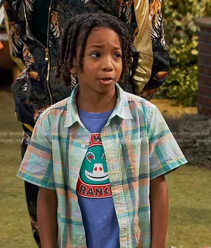 (played by ) on Bunkd on Disney was spotted wearing this Plaid short sleeve shirt on Bunkd on episode 'What About Barb?' (7x06) in Aug 2023. 's Shirt is the Multi-Plaid Button-Down Short Sleeve Woven Shirt by Cat & Jack.
