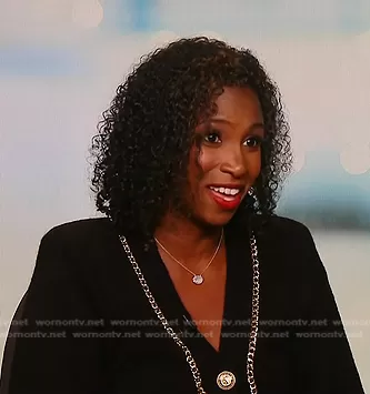 on Today on NBC was spotted wearing this black chain trim cardigan on Today on Aug 30 2023's episode. 's Sweater is the Chain Trim Cardigan by Endless Rose.