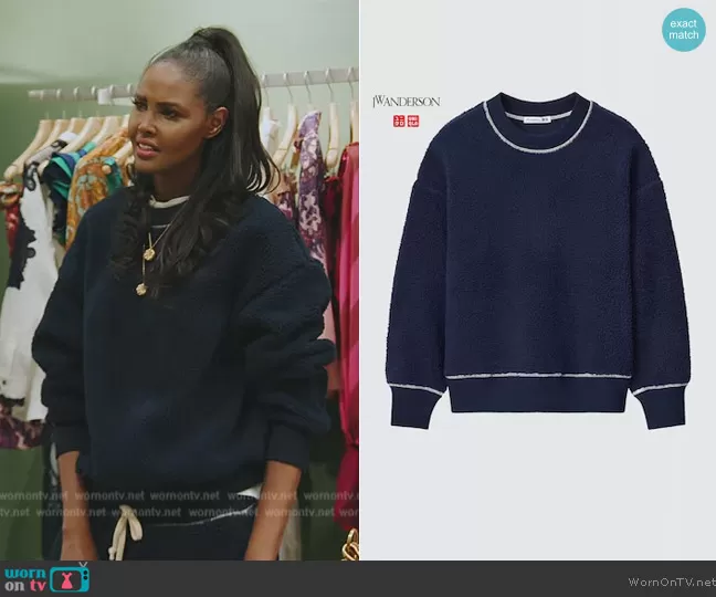 Ubah Hassan on The Real Housewives of New York City on Bravo was spotted wearing this blue fleece sweatshirt and pants on The Real Housewives of New York City on episode 'Business Classy' (14x08) in Sep 2023. Ubah's Sweater is the Pile-Lined Fleece Pullover by JW Anderson . Ubah's Pants is the Fleece Jogger Blue Sweatpants by JW Anderson.