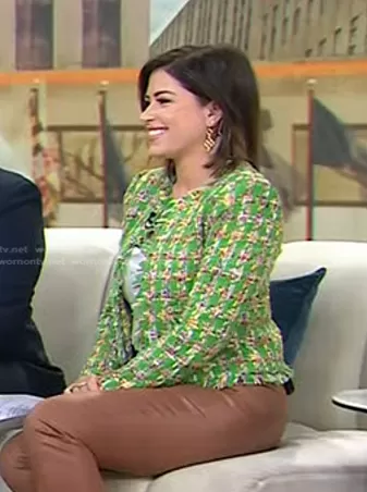 Chloe Melas on Today on NBC was spotted wearing this green tweed open jacket on Today on Sep 05 2023's episode. Chloe's Jacket is the Angelina Tweed Jacket by L'Agence.