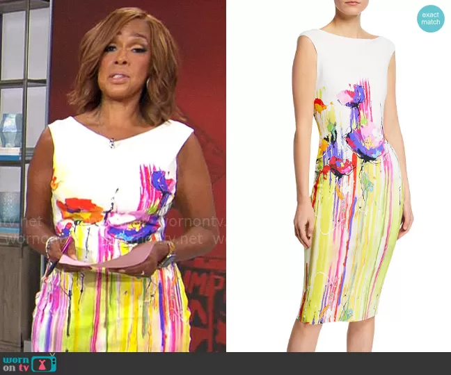 Gayle King on CBS Mornings on CBS was spotted wearing this painted print dress on CBS Mornings on Sep 05 2023's episode. Gayle's Dress is the Purity Print Boat-Neck Cap-Sleeve Sheath Dress by Chiara Boni La Petite Robe .