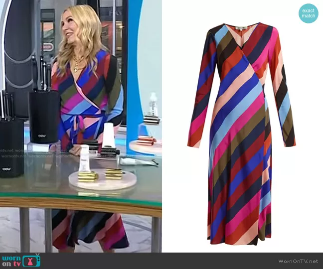 Chassie Post on Today on NBC was spotted wearing this multicolor striped wrap dress on Today on Sep 05 2023's episode. Chassie's Dress is the Silk Wrap Midi Dress in Carson Stripe Black Multi by Diane von Furstenberg.