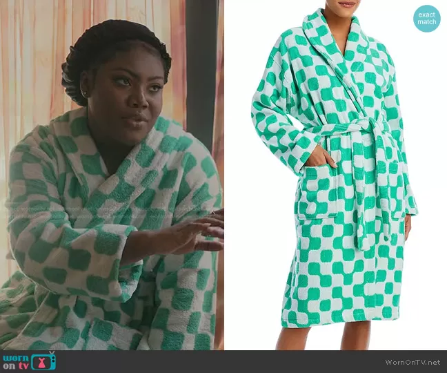 Lynae (played by Zaria Imani Primer) on The Chi on ShowTime was spotted wearing this white and green check bathrobe on The Chi on episode 'Long Live' (6x07) in Sep 2023. 's Robe is the Net Bathrobe by Dusen Dusen.