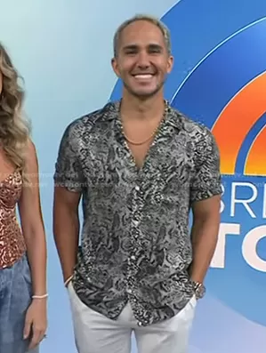 on Today on NBC was spotted wearing this grey snake print shirt on Today on Sep 06 2023's episode. 's Shirt is the Reptilia Shirt in gray by All Saints.