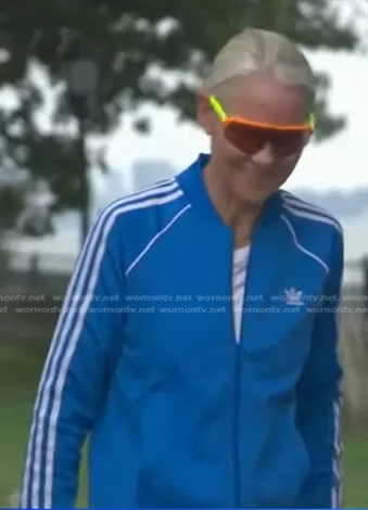 on Good Morning America on ABC was spotted wearing this blue track jacket on Good Morning America on Sep 06 2023's episode. 's Jacket is the Classic SST Track Jacket by Adidas . 's Sunglasses is the Sutro Lite Sweep Orange Prizm Trail Torch Sunglasses by Oakley.
