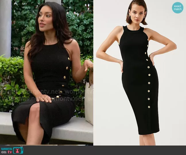 Dress: Compact Stretch Viscose Button Halter Midi Dress by Karen Millen (Thanks Nick)