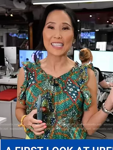 Vicky Nguyen on NBC News Daily on NBC was spotted wearing this green printed ruffle top on NBC News Daily on Sep 08 2023's episode. Vicky's Top is the Haby Top by Ba&sh.
