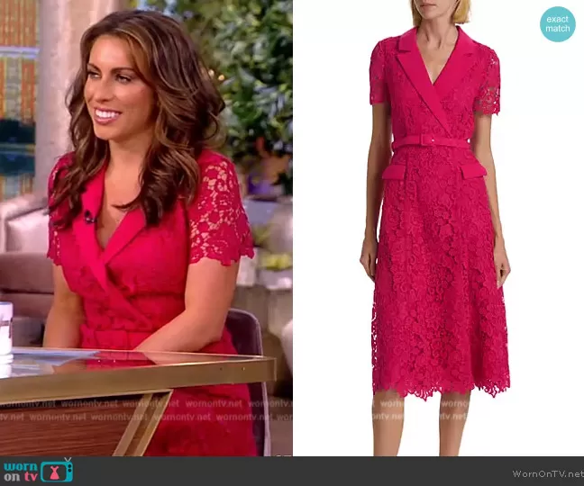 Alyssa Farah Griffin on The View on ABC was spotted wearing this red lace blazer dress on The View on Sep 12 2023's episode. Alyssa's Dress is the Belted Lace Midi-Dress by Self Portrait.