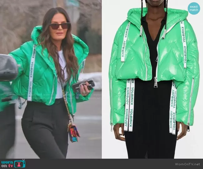 Lisa Barlow on The Real Housewives of Salt Lake City on Bravo was spotted wearing this green cropped puffer jacket on The Real Housewives of Salt Lake City on episode 'Vacation Crashers' (4x02) in Sep 2023. Lisa's Jacket is the Kris Iconic Puffer Jacket by Khrisjoy . Lisa's Sunglasses is the Cat Eye Sunglasses by Givenchy . Lisa's Shoes is the Mid Block Sneakerswith Wedge In Calfskin by Celine . Lisa's Bag is the Wallet On Chain Bag in Neon/Black by Chanel.