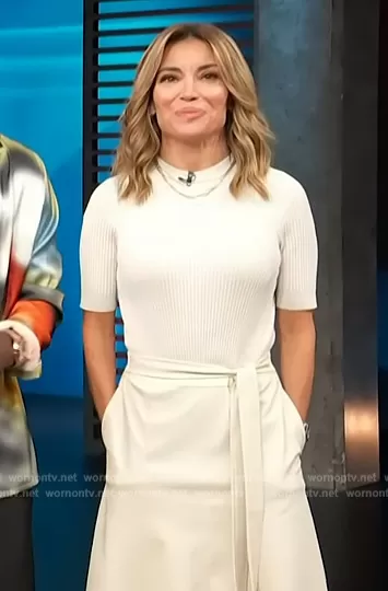 Kit Hoover on Access Hollywood on NBC was spotted wearing this mixed media tie waist dress on Access Hollywood on Oct 11 2023's episode. Kit's Dress is the Matiar Dress by Ted Baker.