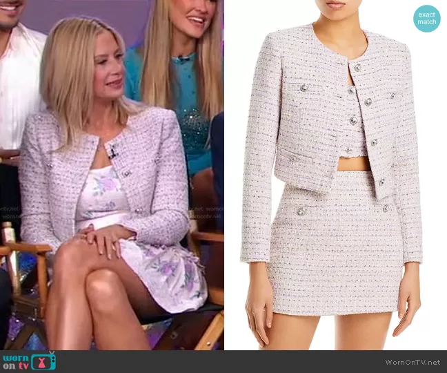 on Good Morning America on ABC was spotted wearing this tweed jacket on Good Morning America on Sep 13 2023's episode. 's Jacket is the Tweed Cropped Jacket by Aqua.