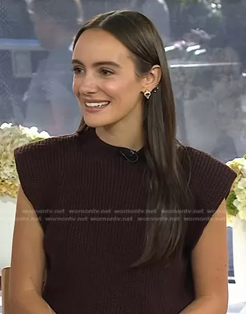 on Today on NBC was spotted wearing this brown ribbed short sleeve sweater on Today on Sep 14 2023's episode. 's Sweater is the Hazlitt Sweater Vest in Rich Cocoa by Babaton.