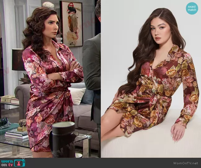 Gabi Hernandez (played by Camila Banus) on Days of our Lives on Peacock was spotted wearing this pink floral shirtdress on Days of our Lives on Sep 15 2023's episode. Gabi (old)'s Dress is the Eco Alya Printed Dress in Digital Tapestry Print Ma by Guess.