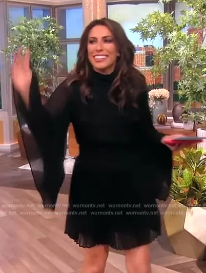 Alyssa Farah Griffin on The View on ABC was spotted wearing this black pleated bell sleeve dress on The View on Sep 15 2023's episode. Alyssa's Dress is the Rosemary Pleated Mini Dress by Milly.