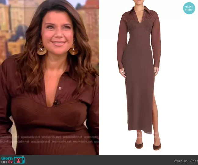 Ana Navarro on The View on ABC was spotted wearing this brown corset dress on The View on Nov 01 2024's episode. Ana's Dress is the Hazel Dress by Staud.