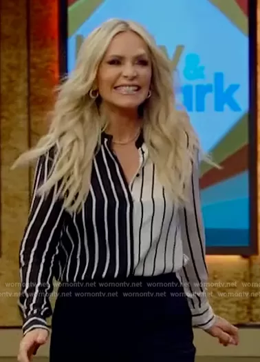 Alice and Olivia Willa Striped Two Tone Blouse worn by Tamra Judge on Live with Kelly and Mark