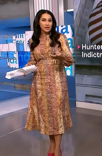 Morgan Radford on NBC News Daily on NBC was spotted wearing this paisley blouse and skirt on NBC News Daily on Mar 25 2024's episode. Morgan's Top is the Luminosity Paisley-Print Puff-Sleeve Blouse by Zimmermann . Morgan's Skirt is the Luminosity Paisley-Print A-Line Midi Skirt by Zimmermann.