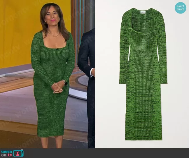 Ganni Ribbed-knit midi dress worn by Michelle Miller on CBS Mornings