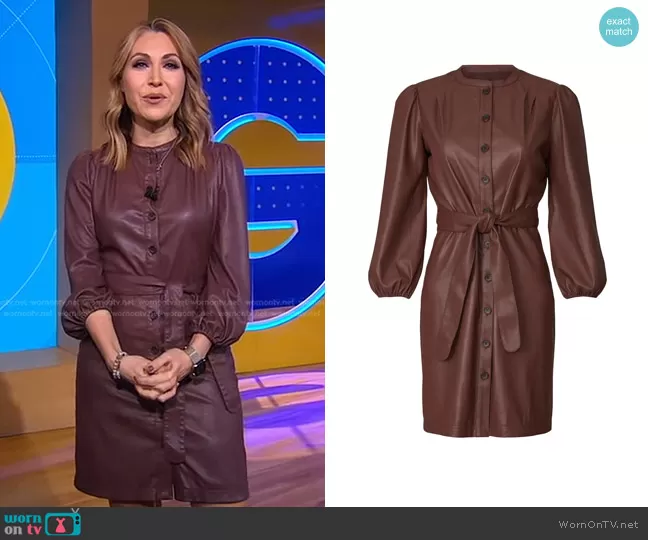 Lori Bergamotto on Good Morning America on ABC was spotted wearing this brown leather shirtdress on Good Morning America on Sep 18 2023's episode. Lori's Dress is the Tallen Faux Leather Shirtdress by Shoshanna.