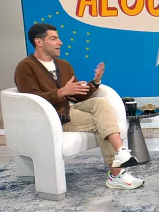 on CBS Mornings on CBS was spotted wearing this brown cardigan and Nike sneakers on CBS Mornings on Sep 18 2023's episode. 's Sweater is the Alpaca Cardigan in Glazed Pecan by Todd Snyder . 's Shoes is the InfinityRN 4 SE Rubber-Trimmed Flyknit Sneakers by Nike.