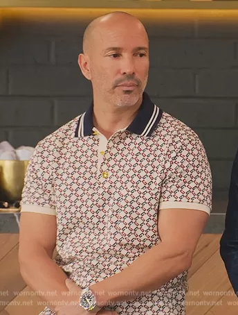 (played by ) on Selling the OC on Netflix was spotted wearing this gg logo polo on Selling the OC on episode 'Sex, Lies, and iPhone Footage' (2x07) in Sep 2023. 's Shirt is the Geometric G Polo Shirt by Gucci.