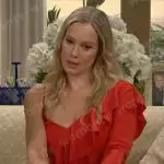 Hope Logan (played by Annika Noelle) on The Bold and the Beautiful on CBS was spotted wearing this red striped maxi dress on The Bold and the Beautiful on Sep 19 2023's episode. Hope's Dress is the Fox Dress in Wine Playful Stripes by Hutch .