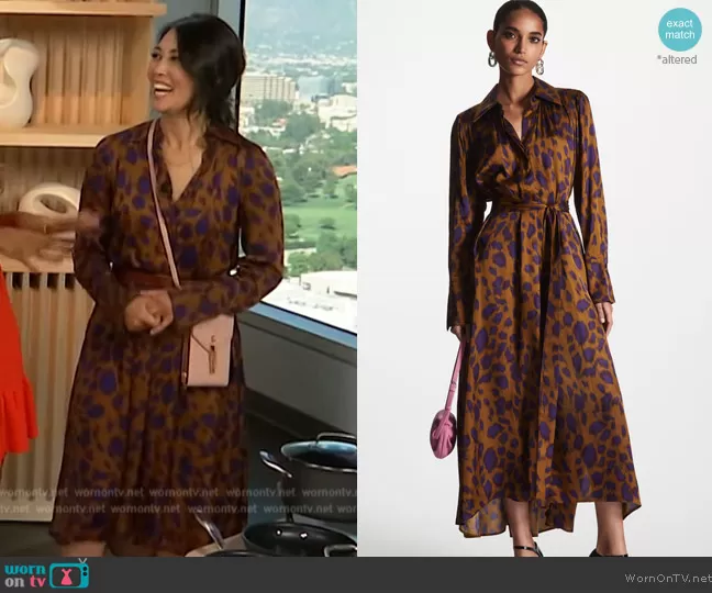 on Access Hollywood on NBC was spotted wearing this brown animal print shirtdress on Access Hollywood on Sep 19 2023's episode. 's Dress is the Belted Printed Midi Dress by Cos.