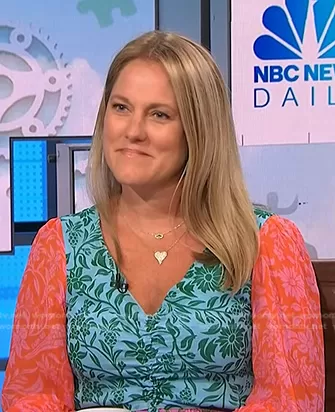 on NBC News Daily on NBC was spotted wearing this blue and pink floral dress on NBC News Daily on Sep 21 2023's episode. 's Dress is the Cutout Maxi Dress by Farm Rio x Anthropologie.