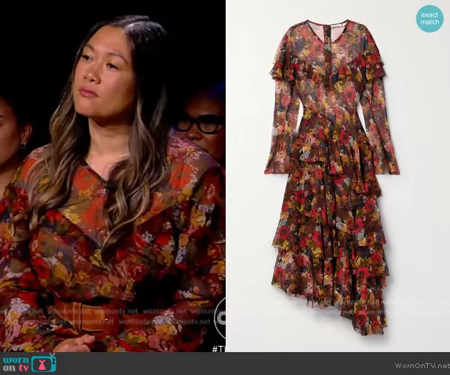 Doen Alouette Asymmetric Ruffled Floral-print Midi Dress worn by Milck on The View