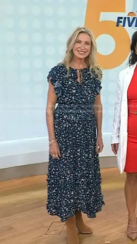 on Today on NBC was spotted wearing this navy floral dress on Today on Sep 22 2023's episode. 's Dress is the King Floral Print Maxi Dress by Shoshanna.
