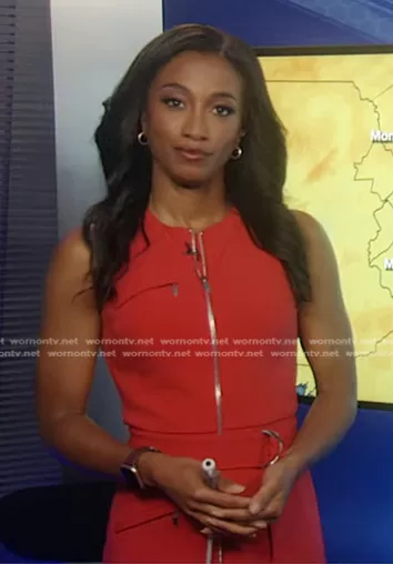 Brittany Bell on Good Morning America on ABC was spotted wearing this red belted zip front dress on Good Morning America on Jun 19 2024's episode. Brittany's Dress is the Zip-Up Belted Dress by Antonio Melani.