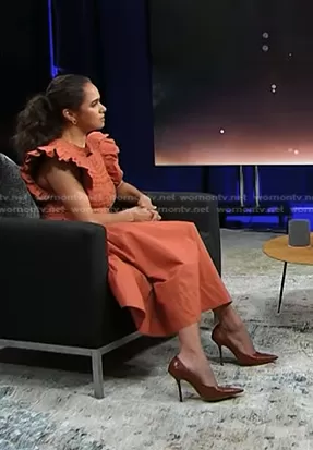 on Today on NBC was spotted wearing this orange smocked dress on Today on Sep 26 2023's episode. 's Dress is the Madeline Smocked Dress in Brick by Ulla Johnson.