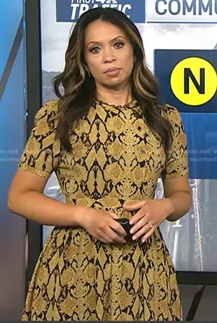Adelle Caballero on Today on NBC was spotted wearing this yellow printed dress on Today on Sep 26 2023's episode. Adelle's Dress is the Cascade Robe Dress by Ba&Sh.