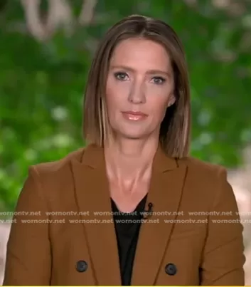 on Good Morning America on ABC was spotted wearing this camel blazer on Good Morning America on May 30 2024's episode. 's Jacket is the Wool Miller Dickey Jacket by Veronica Beard.