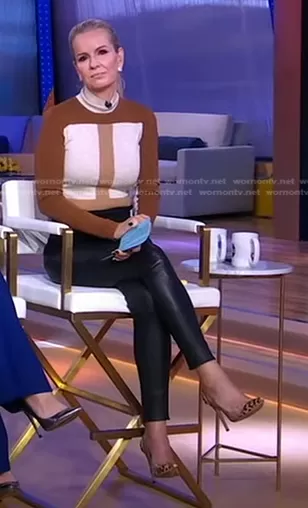 Dr. Jennifer Ashton on Good Morning America on ABC was spotted wearing this colorblock sweater on Good Morning America on Sep 26 2023's episode. Jennifer's Sweater is the Light Wool Intarsia Fitted Turtleneck Colorblock Sweater by Chloe . Jennifer's Shoes is the Leopard-Print Calf Hair-PVC Pump by Gianvito Rossi.
