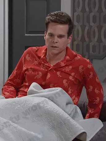 Leo Stark (played by Greg Rikaart) on Days of our Lives on Peacock was spotted wearing this red tiger print pajamas on Days of our Lives on Jan 03 2024's episode. Leo's Pajama Set is the Bella Tiger Cotton-Blend Pajamas by Cosabella.
