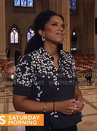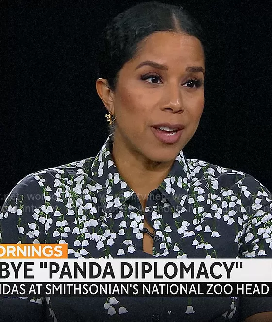 Adriana Diaz on CBS Mornings on CBS was spotted wearing this black and white floral top on CBS Mornings on Nov 08 2023's episode. Adriana's Top is the Floral Print Stretch Poplin Shirt by Adam Lippes .