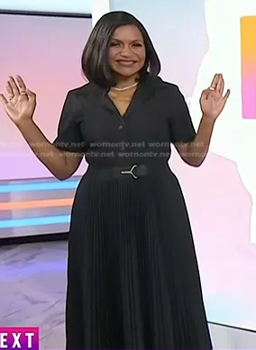 on Today on NBC was spotted wearing this black pleated belted shirtdress on Today on Oct 02 2023's episode. 's Dress is the Poplin Belted Pleated Shirtdress by Tory Burch.