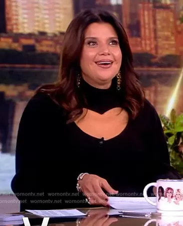 Ana Navarro on The View on ABC was spotted wearing this black heart cutout knit dress on The View on Oct 02 2023's episode. Ana's Dress is the Heart Cutout Long Sleeve Sweater Dress by FARM Rio.