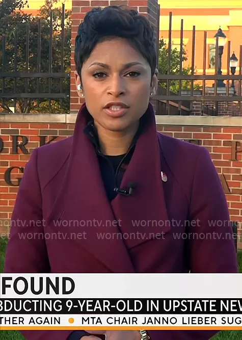 Jericka Duncan on CBS Mornings on CBS was spotted wearing this burgundy coat on CBS Mornings on Oct 03 2023's episode. Jericka's Coat is the Safiera Coat by Ted Baker .