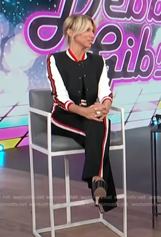 on Access Hollywood on NBC was spotted wearing this contrast stripe jacket and pants on Access Hollywood on Oct 03 2023's episode. 's Jacket is the Barton Cropped Varsity Jacket by Alice + Olivia . 's Pants is the Ming Cuffed Pants with Side Stripe by Alice + Olivia.
