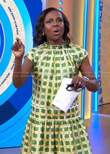 Deborah Roberts on Good Morning America on ABC was spotted wearing this green plaid dress on Good Morning America on Oct 03 2023's episode. Deborah's Dress is the Abstract-Print Silk Minidress by Marni.