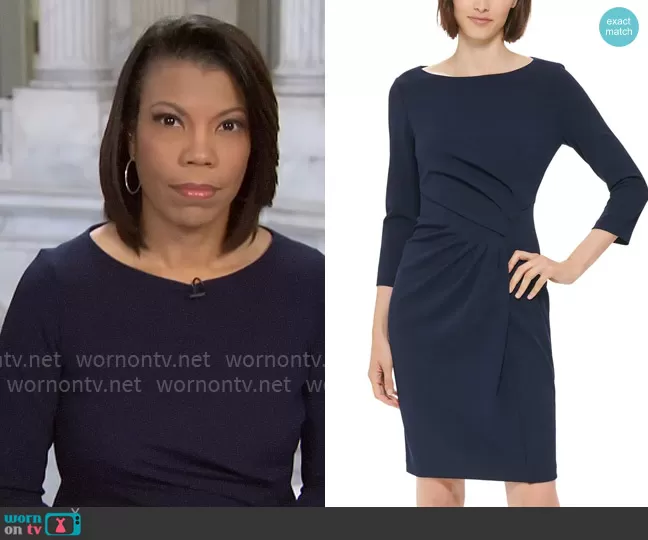 Nikole Killion on CBS Mornings on CBS was spotted wearing this navy sheath dress on CBS Mornings on Oct 04 2023's episode. Nikole's Dress is the Boatneck Midi Dress by Calvin Klein .