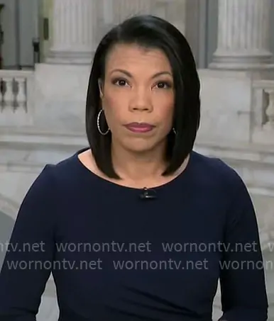 Nikole Killion on CBS Mornings on CBS was spotted wearing this navy sheath dress on CBS Mornings on Jan 06 2026's episode. Nikole's Dress is the Boatneck Midi Dress by Calvin Klein .