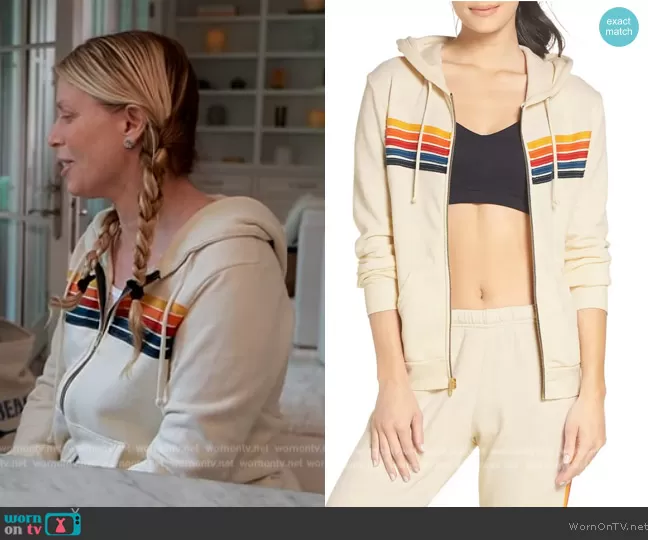 Jill Martin on Today on NBC was spotted wearing this rainbow stripe hoodie on Today on Oct 05 2023's episode. Jill's Sweater is the 5 Stripe Hoodie by Aviator Nation.