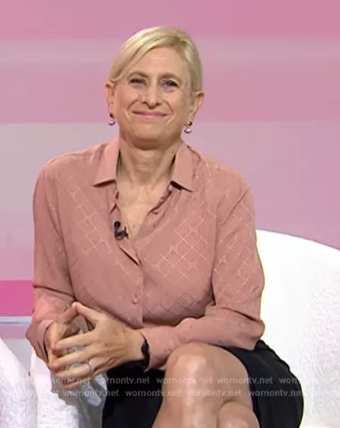 on Today on NBC was spotted wearing this pink blouse on Today on Oct 05 2023's episode. 's Top is the Checked silk-crepe shirt by Gucci.