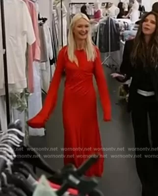 on Today on NBC was spotted wearing this Zanna Roberts’ red long sleeve asymmetric dress on Today on Oct 05 2023's episode. 's Dress is the Asymmetric Slash Jersey Dress by Victoria Beckham.