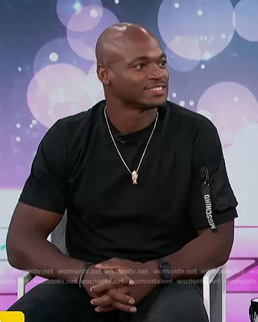 Moschino Zip-pocket short-sleeve T-shirt worn by Adrian Peterson on Access Hollywood
